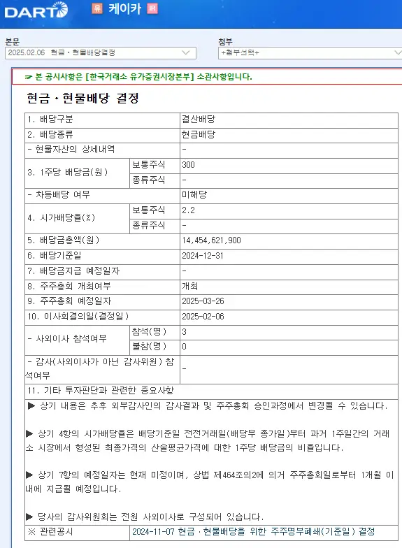 - 배당금 지급 예정일: 주주총회 이후 1개월 내 (2025년 4월 예상)